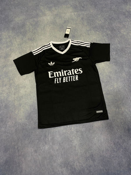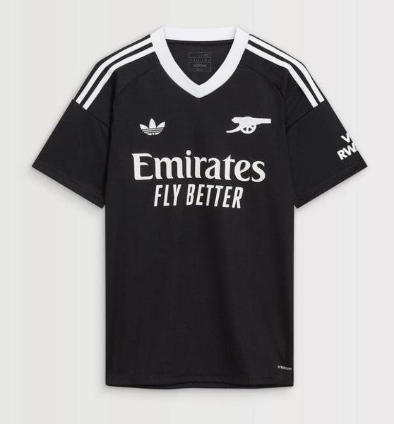 Adidas Arsenal 2024-2025 third goalkeeper football shirt has a simple design with black as the main color and white logos.
