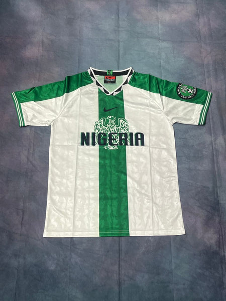 The 1996 away shirt was worn when Nigeria won the Gold Medal at the Atlanta 1996 Olympics. The shirt has an oversized crest on the centre of the shirt that was worn by the Super...