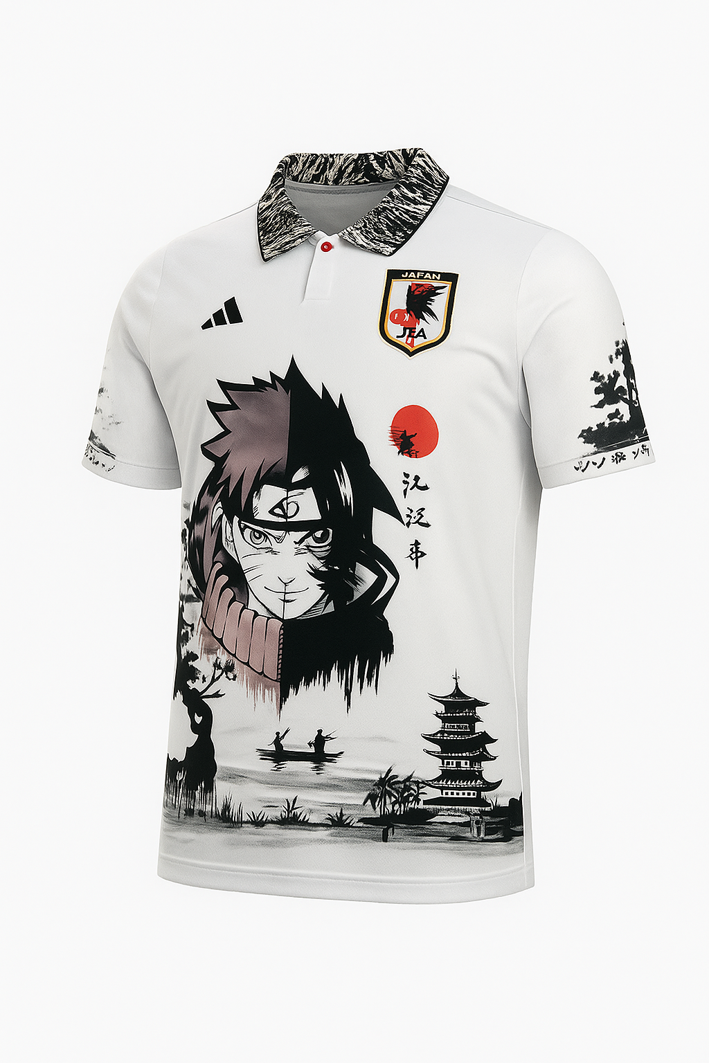 Relive the legendary clash between Naruto and Sasuke with this Japan jersey that embodies their intense rivalry and unbreakable bond.